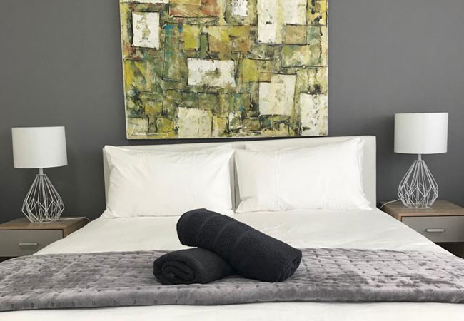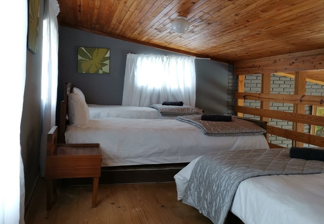 Unit 2 has three bedrooms which can accommodate 8 people. Bedroom 1 has a Queen-size bed and bedroom 2 has a double bed. Bedroom 3 has a double bed and two single beds. Each unit has flat screen TV with DStv, tea and coffee making facilities, Dining room table, full self catering kitchen, braai area and off street parking.