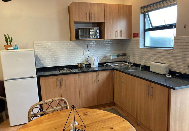 Luxury Cottage is air-conditioned and offers a bedroom with a Queen-size bed, and a cosy fireplace, and has an en-suite bathroom with a bath and a shower. There is a fully equipped kitchen with a fridge, 2-plate stove, oven, microwave, washing machine and dining area. The lounge area is furnished with a TV with selected DStv channels. The cottage opens onto a private patio, where guests can braai or relax in the sun.