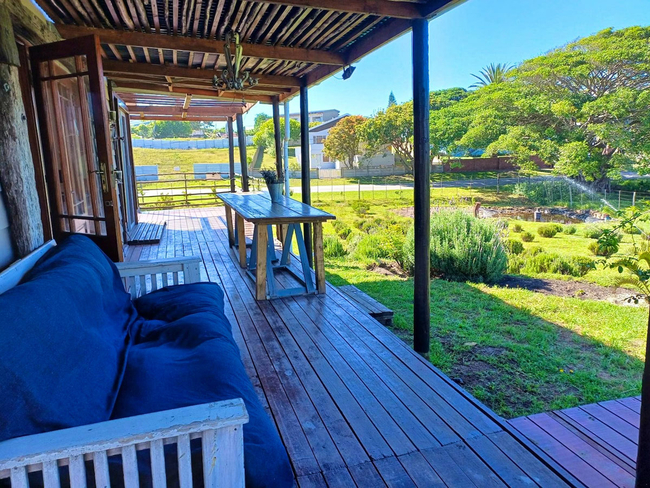 This classic holiday home comprises two bedrooms, one furnished with a double bed and the other with two single beds. The bedrooms share a bathroom fitted with a shower, toilet, and basin, offering practical comfort for a small family. The kitchen is fully equipped for convenient self catering and features a fridge freezer, a four plate stove with oven, a microwave, as well as ample crockery and cutlery. The spacious living area creates a welcoming setting for relaxed evenings, complete with a wood fired pizza oven, a cosy bar corner, and a smart television with WiFi connectivity. The property welcomes pets and includes a secure enclosed section suitable for dogs. A substantial garden surrounds the home, providing generous space for children and pets to play freely. Guests may also make use of the on site herb garden, adding a fresh touch to home prepared meals. A twenty two metre swimming pool offers an additional opportunity for a refreshing dip on warm coastal days. A sunlit deck furnished with comfortable seating provides attractive garden views and a peaceful environment for relaxation. Birdlife is abundant in the area and, after dark, small antelope are occasionally seen, offering a memorable natural experience. The shared outdoor areas further enhance the appeal, featuring an expansive garden, a dedicated barbecue area, and an outdoor dining space ideal for leisurely meals. Guests may relax on the terrace or patio while enjoying picturesque garden surroundings. The fully fenced grounds, private parking, and day long security contribute to a secure and carefree stay.