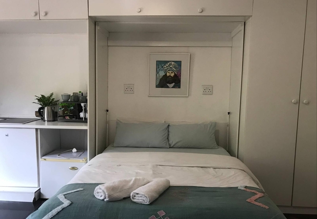 Biddy Lee Double Room is a quiet neat room furnished with a double bed and an en-suite bathroom fitted with a shower, toilet and basin. The room is decorated with unique artworks, with access to a communal kitchen.
