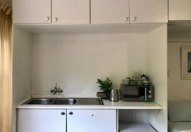 Lucie Rie is a beautiful room furnished with a Queen-size bed and an en-suite bathroom fitted with a shower, toilet and basin. There is an alcove and windows onto the garden. Decorated with unique artworks and access to a communal kitchen.