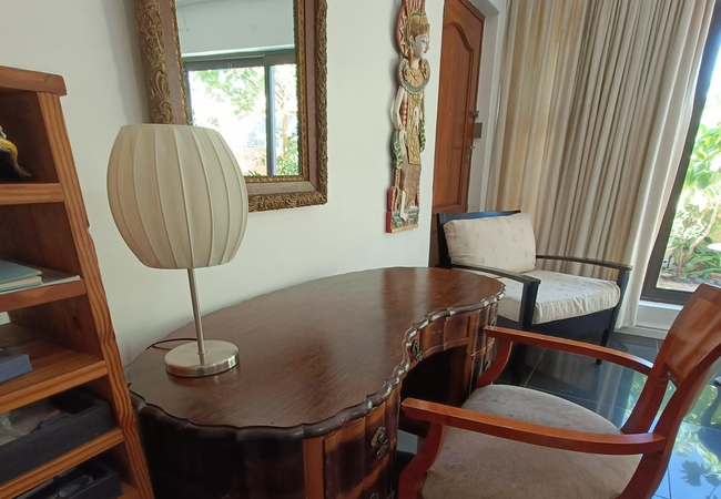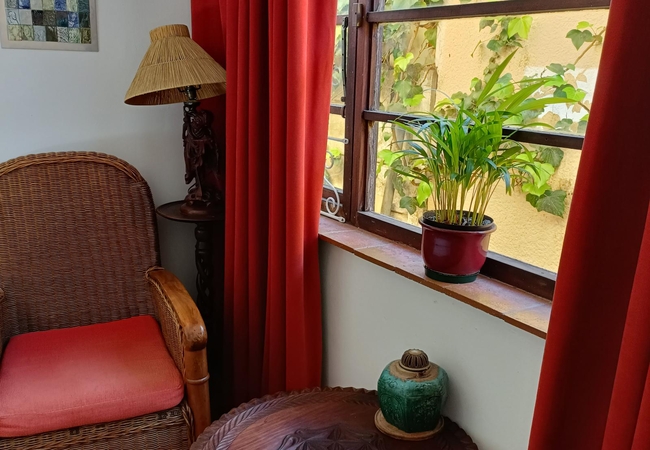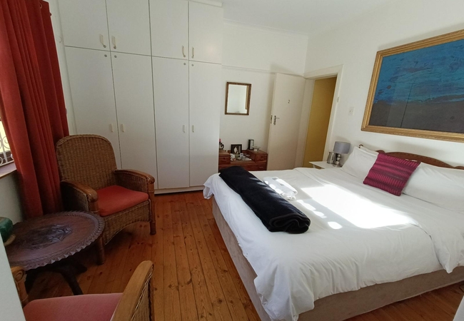 Esias Bosch is a beautiful room furnished with a Queen-size room and an en-suite bathroom fitted with a shower, toilet and basin. There is a sliding door onto a terrace with a kitchenette. Decorated with unique artworks.