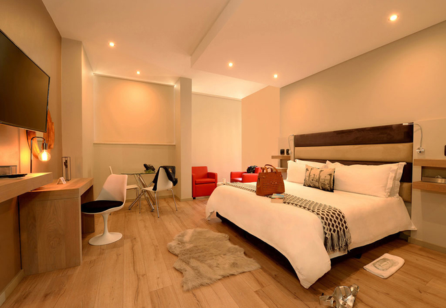 The Superior Rooms offer spacious accommodation in a double bed and has an en-suite bathroom equipped with a shower, hand basin and WC. A complete kitchenette with refrigerator, microwave, coffeemaker, and toaster. There is broadband Wi-Fi available, a bar fridge, built-in-safe, LCD television, air-conditioning, queen-sized bed, and European adaptors.