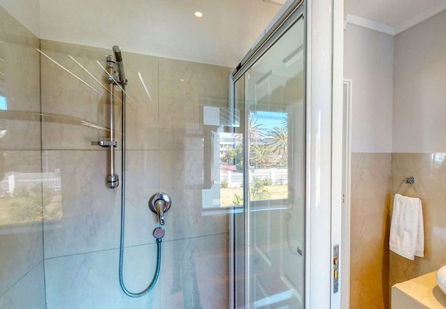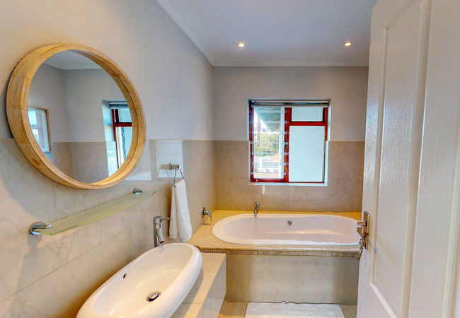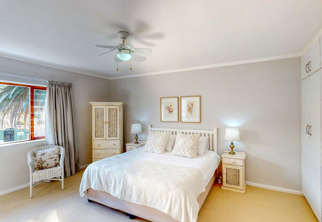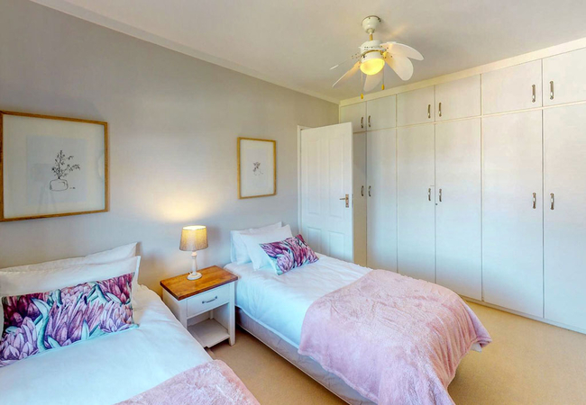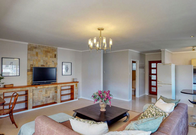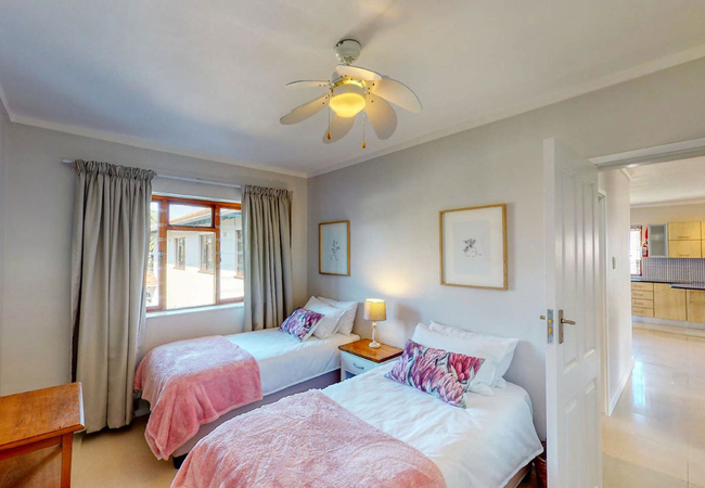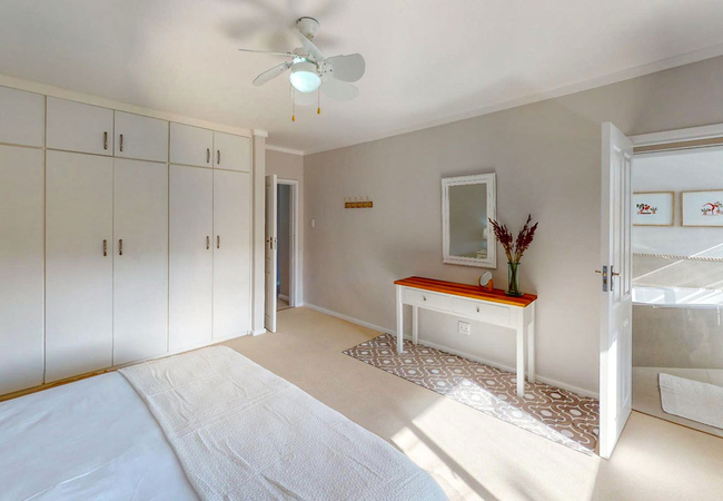 The Links 7 has two bedrooms. The main bedroom is furnished with a King-size bed and the second bedroom has two single beds. There are two full bathrooms, one of which is en-suite to the main bedroom. The apartment has an open plan living area which has a fully equipped kitchen including a dishwasher. The dining area has seating space for 6 people, while the lounge has a comfy lounge suite and a Smart TV. The apartment also has Wi-Fi, one aircon and a roof fan. A lock-up garage is available for guests. This property boasts a 5.5kW inverter coupled with a powerful 5kW battery system. This combination ensures uninterrupted functionality of essential household appliances during load-shedding, providing peace of mind even in times of power outages. Notably high load appliances will not be operational during load-shedding, including the geyser and oven/stove.