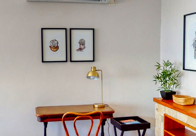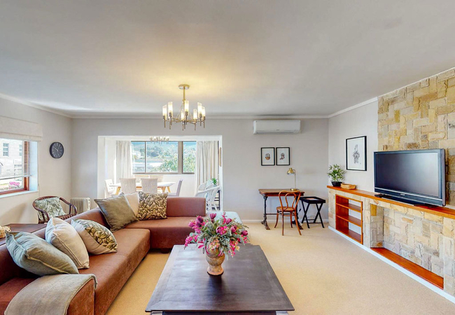 The apartment has an open plan living area which has a fully equipped kitchen including a dishwasher. The dining area has seating space for 6 people, while the lounge has a comfy lounge suite and a Smart TV. The apartment also has Wi-Fi, one aircon and a roof fan.