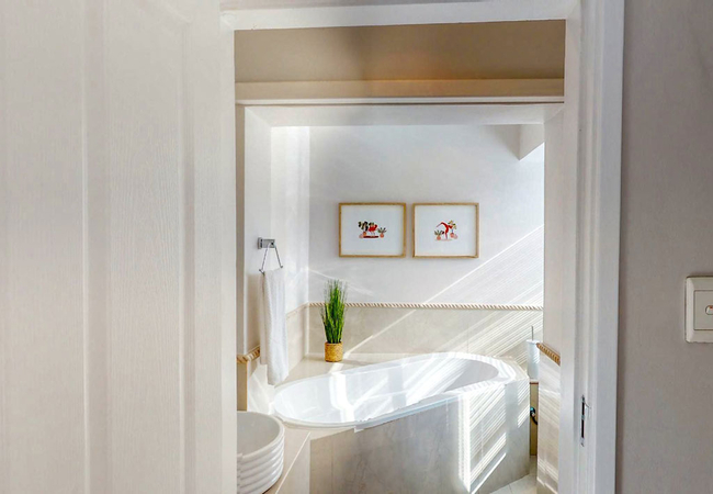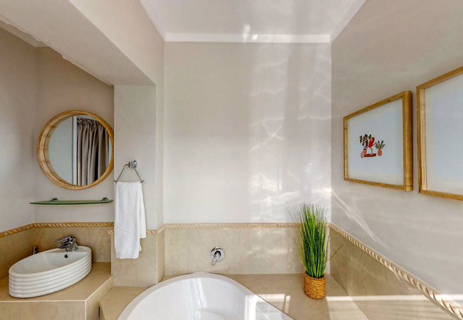 The Links 7 has two bedrooms. The main bedroom is furnished with a King-size bed and the second bedroom has two single beds. There are two full bathrooms, one of which is en-suite to the main bedroom.