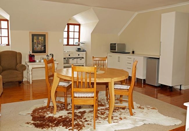The Loft is a self catering apartment sleeping six guests. There are two bedrooms, one is furnished with a Queen-size bed and the other is furnished with a double and a single bed. There is a sleeper couch is available for a sixth guest. The bathroom is fitted with a bath, toilet and basin.