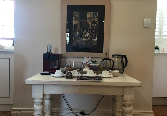 There are two living areas. One area has seating for eight with a 50 inch curved TV screen with Netflix and DStv. The second living area has two very large 3 seater couches and unobstructed views of the ocean. There is a semi equipped kitchen with fridge, microwave, coffee machine, kettle etc. for limited self catering.
