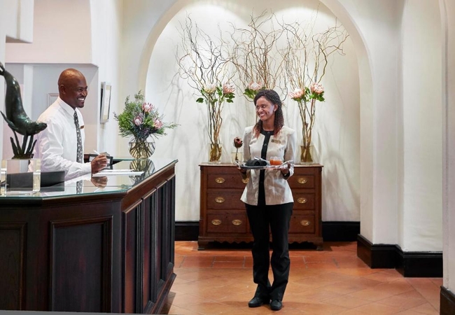 A selection of fresh fruit and freshly baked pastries are available each morning, together with cereals, and delicious Franschhoek Smoked Salmon Trout, while hot breakfast options are served à la carte.