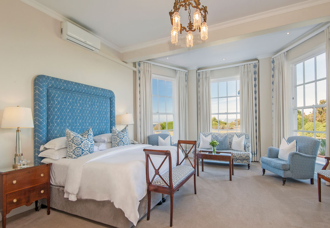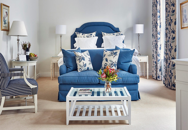The Luxury Double Rooms with Sea View are perfectly positioned for watching pods of dolphins and whales as they swim in the bay below. The panoramic views over Walker Bay have inspired the decor of each of the rooms. A comfortable seating area and spacious en-suite bathroom, air-conditioning and under-floor heating throughout, make for ultimate comfort.