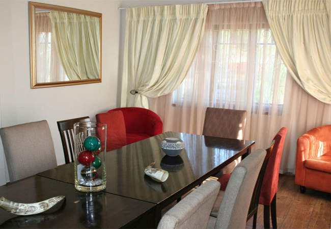The Guest House offers accommodation in five comfortable suites, each with a double bed, an en-suite bathroom, air conditioning, a TV with DStv and tea / coffee making facilities.