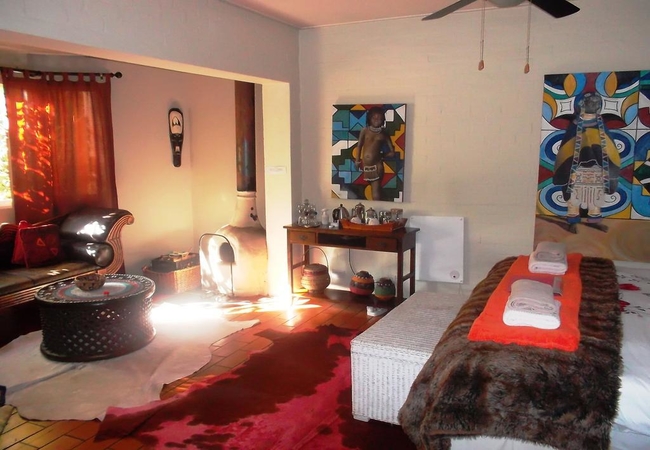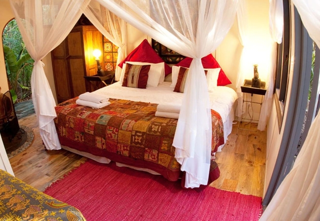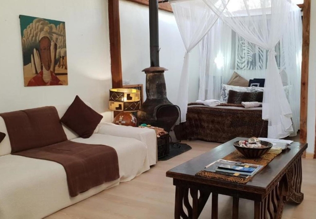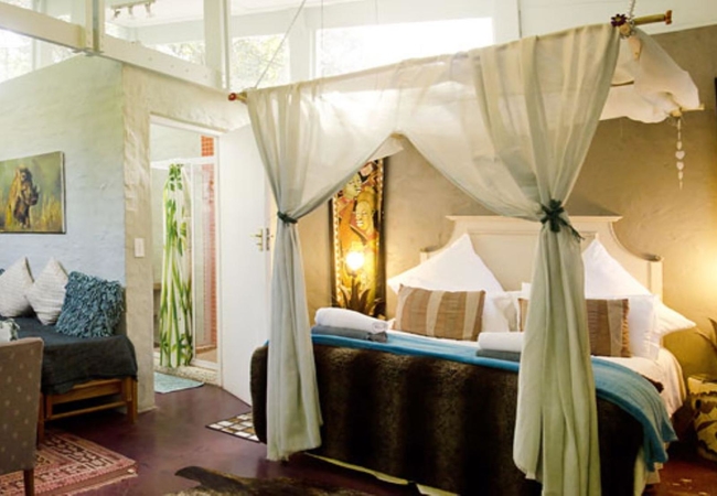 The Boma Family Suite is located at the pool side. The Family Suite consists of two inter leading en-suite rooms. The main bedroom is furnished with a magical four-post queen bed, and the kid's room has 1 or 2 bunk beds. The bathrooms are fitted with a shower / bath, toilet and basin. The unit can sleep up to four children under the age of 12. The unit is equipped with a kitchenette and a fireplace.