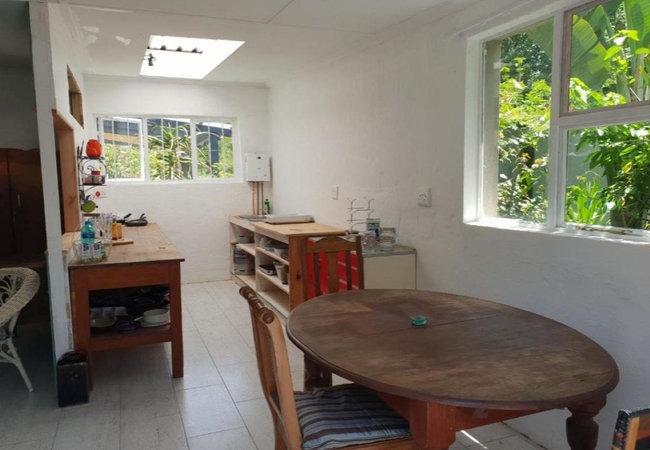 Bullrush is a peaceful garden cottage perfect for solo travellers or couples. Features a queen bed, ensuite shower, compact kitchen, and a private veranda with seating. Surrounded by bamboo and indigenous plants, ideal for a quiet escape into nature.