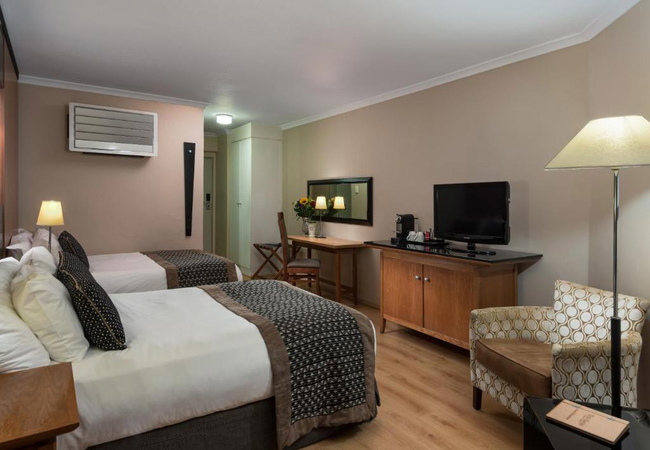 These rooms have two Queen-size beds and an en-suite bathroom with a shower. All rooms have Wi-Fi, TV with satellite channels, air conditioning, desk, complimentary tea / coffee, complimentary toiletries and a laptop safe.