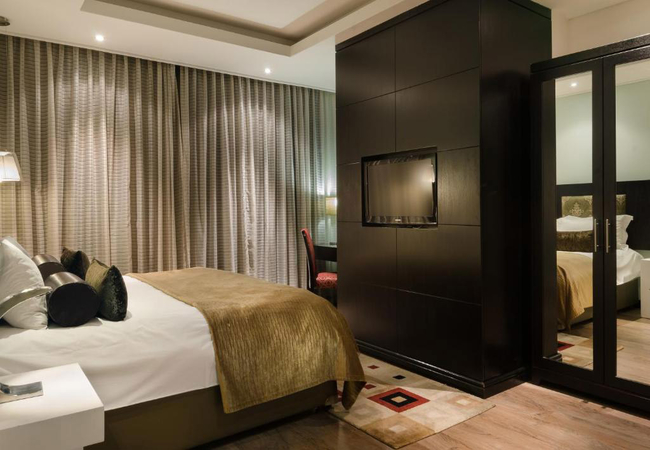 The Executive Suites have a King-size bed and en-suite bathroom with a shower only. There is a lounge area. The suites have Wi-Fi, TV with satellite channels and PVR, air conditioning, desk, complimentary tea / coffee, complimentary toiletries and a laptop safe.