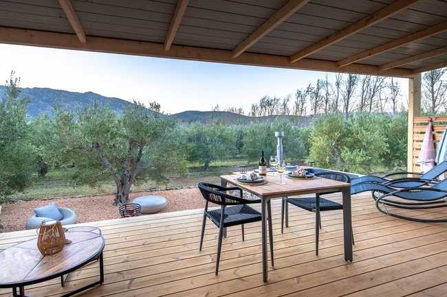 Among the olive groves with uninterrupted views of the mountains, the Olive Pod provides a private escape designed for couples or solo travelers who appreciate style, comfort, and tranquillity. The retreat embraces eco-friendly principles while blending minimalist design with luxurious details, offering a refined yet uncomplicated stay.