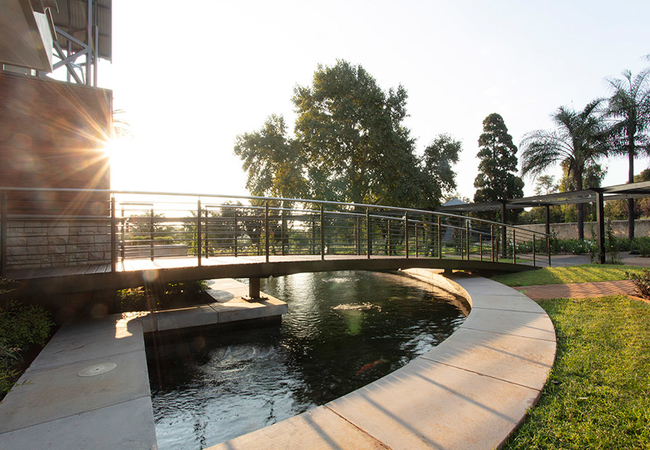 The Rasmus is a luxury Pretoria guest house on a 20 hectare working farm in town. Enter a world of tranquility only a heartbeat away from all that a buzzing city has to offer…right on our doorstep. Awake to the sounds of sheep and cattle lazily grazing on green grass surrounded by beautifully landscaped gardens. Listen to a waterfall cascading into one of the biggest Koi ponds in South Africa. A haven to some of the most magnificent Koi to be found outside of Japan..majestically gliding by in total tranquility.