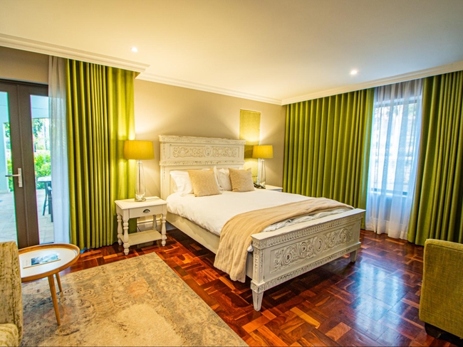 This room contains a king-size bed and has an en-suite bathroom with a shower. The room has a private balcony, and is equipped with air-conditioning, Wi-Fi, a TV with selected DStv channels, and tea- and coffee-making facilities.