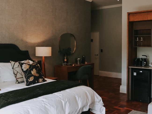 This inviting bedroom is located separately from the main guesthouse, offering both privacy and comfort. It includes an en-suite bathroom with both a shower and a bathtub, perfect for a relaxing soak or a quick rinse. Modern amenities such as Wi-Fi, a TV, and air conditioning ensure a convenient stay, while a cosy fireplace adds warmth and charm on chilly winter evenings. Guests can also enjoy a comfortable sitting area, a refrigerator, coffee and tea facilities, and the peace of mind of a secure safe. The unit is non-smoking and thoughtfully equipped for a restful retreat.