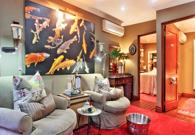 Luxury suite has air-conditioning and gas fireplace - lounge.Plasma TV with DSTV, DVD player (sound system) and iPod docking station. Mini-bar with comp soft drinks and Nespresso machine. Full en-suite bathroom with add outdoor shower and Jacuzzi.