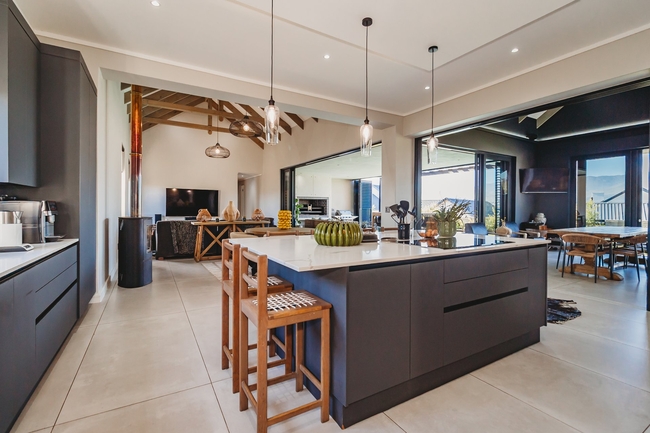 On the rolling foothills of the Outeniqua Mountains, within the secure and prestigious Kingswood Golf Estate, The Ridge House offers refined self-catering accommodation in a spacious four bedroom villa with three bathrooms. Guests have access to the estate clubhouse restaurant, a sun terrace, a seasonal swimming pool, manicured gardens, braai facilities, and complimentary WiFi.