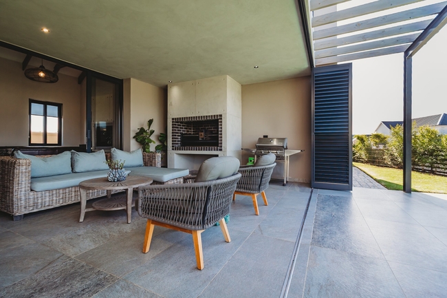 Outdoor living is enhanced by a covered patio, ideal for relaxed al fresco dining, as well as a swimming pool for refreshing leisure. Braai facilities and secure on-site parking further contribute to a comfortable and enjoyable stay.
