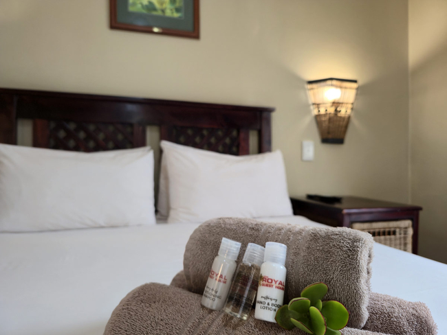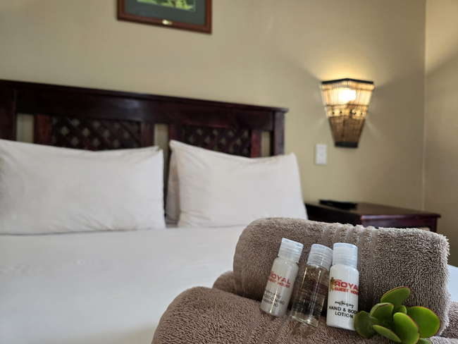 Royal Guest House has 12 rooms on 3 levels, a lovely plush lounge area with a crows' nest view of our beautiful surrounds, a deck and pool area to enjoy on hot summer days or to delight in at sundowners when the sun sets directly across from The Royal Guest House.