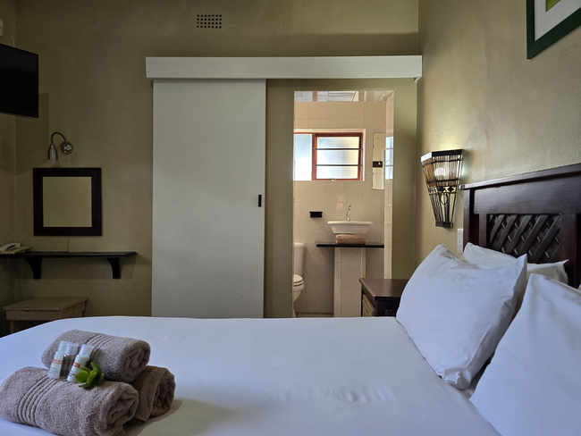 The Standard Room has a Queen-size bed and en-suite bathroom with a shower. There is a flat screen TV with selected DStv channels and a stocked mini-bar. Tea/coffee facilities, as well as, towels, gowns and slippers are provided.