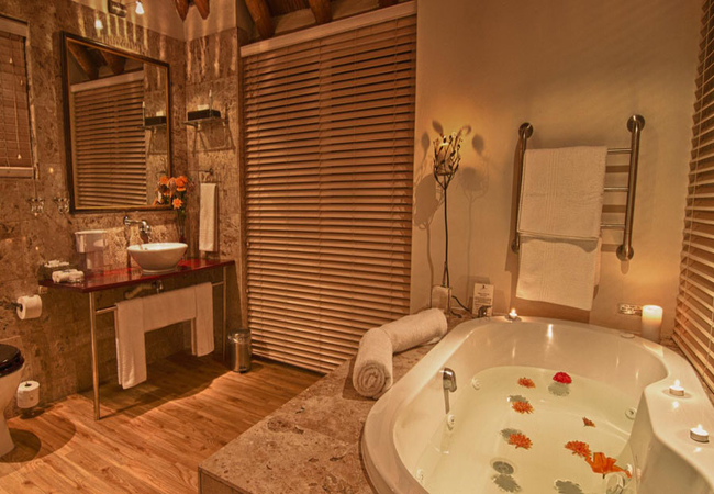 Generous classic bathrooms offer terry towel robes, heated towelling rails, separate showers, under-floor heating, jacuzzi bath tubs, bidets and our honeymoon suite offers an extra outdoor shower and jacuzzi on its timber deck where you can enjoy a glass of champagne or a sundowner or two watching a spectacular sunset.
