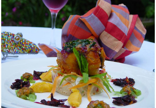 Delicious evening meals are served as the sun sets from 19h00 to 22h00