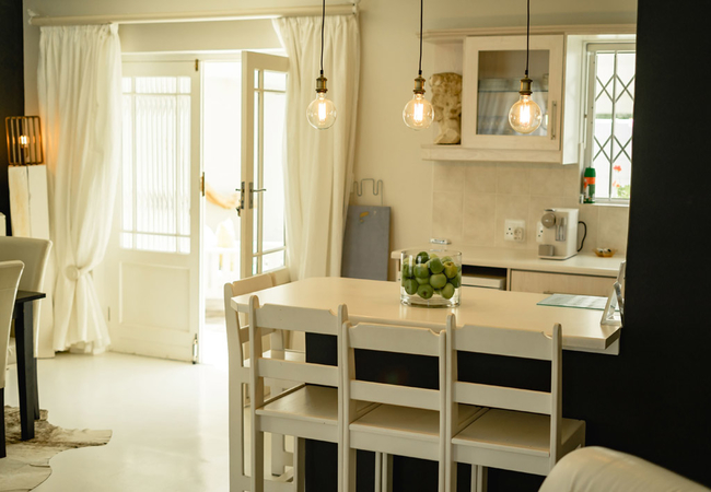 The house features two characteristic bedrooms (with en-suite bathrooms), a fully equipped open-plan kitchen, dining area and lounge all decorated in sophisticated neutrals and subtle accentuation's to sooth you into perfect placidity. There is a TV with DStv and FREE Wi-Fi. Guests can relax on the under-cover patio with its small tranquil garden or make use of the barbecue area. The house is fully equipped with every necessary amenities and facilities to make your stay an unforgettable experience. Seagull Hermanus is situated 500m from the sea. Please ensure you bring your own swimming towels.