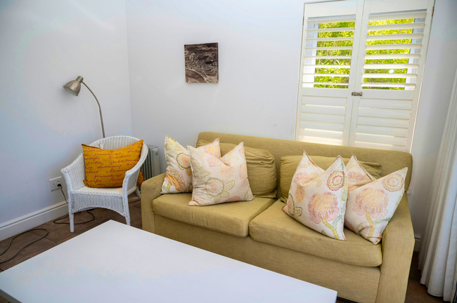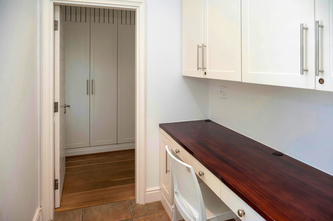 Stepping outside, guests will find a charming patio with outdoor seating and a built-in braai, perfect for entertaining, while the sparkling swimming pool adds a touch of leisure and luxury.