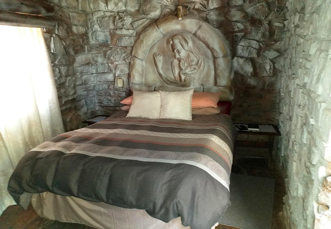 This Double Room is furnished with a double bed. The private bathroom is equipped with a hower, hand basin and toilet. The room has a with a fireplace and a private bathroom. Tea/Coffee making facilities with small bar fridge. Please note: No Kitchen, No Table. Bed linen is supplied and towels are available on request free of charge.