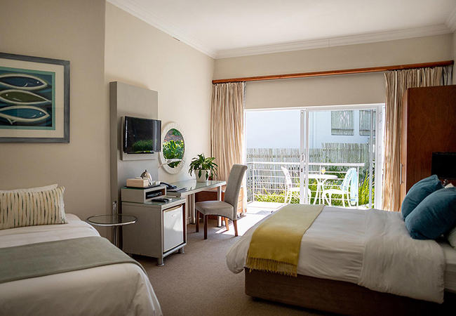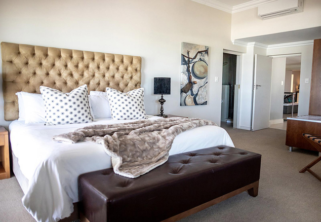 These are superior en-suite rooms opening onto an upstairs balcony with stunning views of the Atlantic Ocean and Robben Island. The balconies have privacy partitions. These rooms have King-size beds and can be converted to twin beds on request. All the rooms have en-suite bathrooms with a shower, air conditioning, TV with satellite channels, Wi-Fi, tea / coffee trays, hairdryer, safe, bar fridge and luxurious bathroom amenities.
