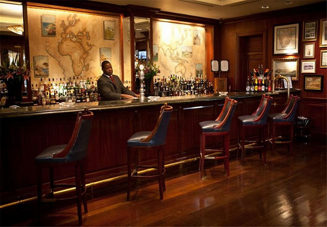 The interior of the Table Bay Hotel, one of the finest Cape Town hotels, presents a kaleidoscope of impressions, from the European marble mosaic of the entrance court to the intricate parquet floor of the foyer framed by the full-scale drama of Table Mountain, with the activity of the harbour in the foreground. Below the foyer to the south, is the grand lounge with its cathedral ceiling and twin fireplaces.