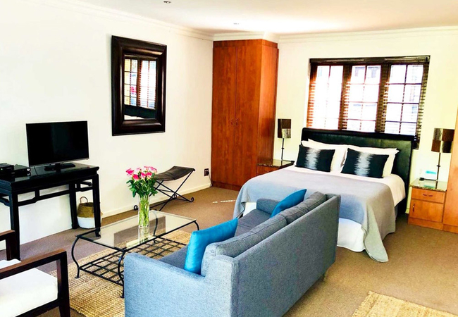 The Tarragon boasts beautiful landscaped gardens, a large swimming pool, braai area with spectacular views and koi ponds. One has a feeling of space and tranquility and within three minutes of leaving your cottage can be walking on Table Mountain. Peacocks, Egyptian geese, cormorants, butterflies and dragonflies are just some of our other daily visitors.