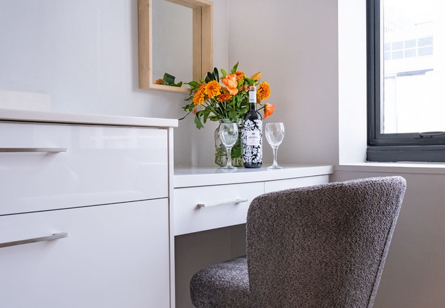 The apartment also has a delightful, fully equipped kitchenette that caters to all of your culinary aspirations.