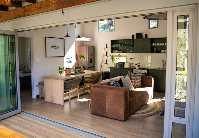 Enjoying views of the Olifants River, the cottage offers guests the opportunity to detox and relax surrounded by nature. Guests can explore the marked trails, cool down in the dipping pool, and watch the birds. Fly fishing can also be enjoyed but please note only fly fishing is allowed, only barbless hooks are used and fishing is on a catch and release basis. The Trout Pod is approximately 50 km from Prince Alfred Hamlet for guests who want to explore.