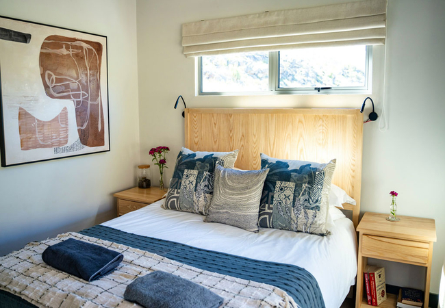 The Trout Pod offers accommodation in Prince Alfred Hamlet in two en-suite bedrooms furnished with double beds. The bathrooms are fitted with a shower, toilet and basin. For convenience, Enchantrix Biodegradable Body and Hair wash, linen and bath towels, as well as toilet paper, are provided. Guests please need to bring their own swimming towels. Please note, the toilets run on a septic tank system and hot water is provided by a gas geyser.
