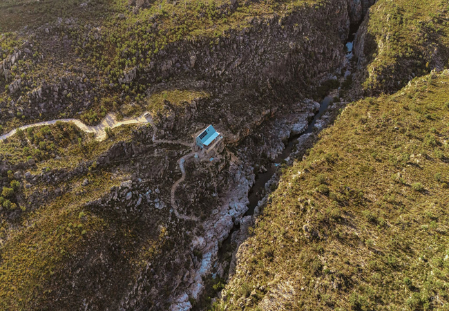 Set on a cliff in the Witzenberg overlooking the Olifants River, the amazing off-the-grid Trout Pod offers fly fishermen the dream destination to fish for brown trout in the Western Cape. The rustic cottage is designed to blend in with the surroundings, away from the stresses and strains of the city, and is not equipped with a TV or Wi-Fi, or mobile phone signal.