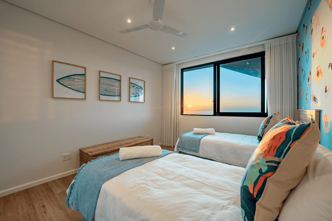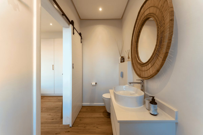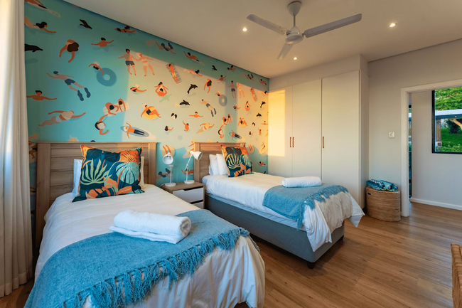 This generous double-storey home accommodates up to eight adults and four children across six bedrooms. Four of the bedrooms are en-suite, while guests also have access to one shared bathroom and an additional guest toilet. The sleeping arrangements include two bedrooms fitted with king-size beds, two bedrooms with queen-size beds, and two further bedrooms designed for children, each furnished with twin single beds.