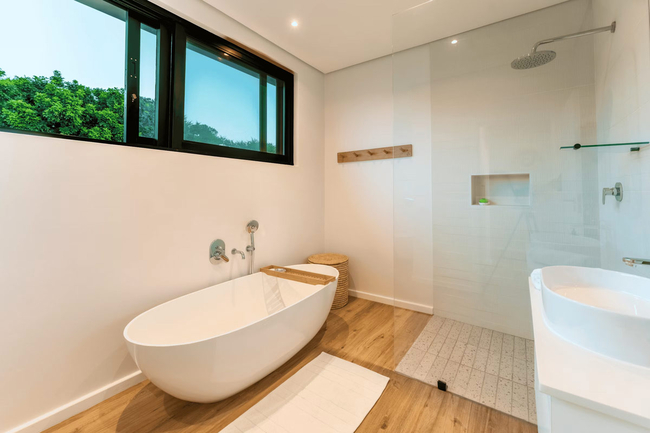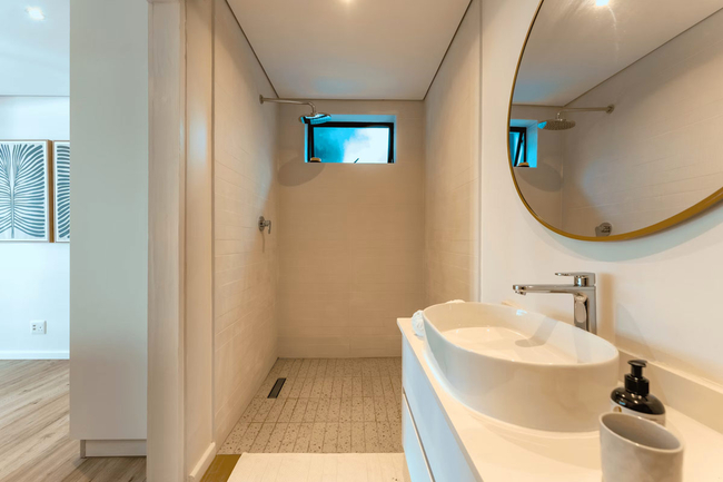 Two of the en-suite bathrooms are fitted with both a bath and a shower, while the remaining two en-suite bathrooms offer shower facilities only. The shared bathroom includes a shower, washbasin, and toilet. Guests are provided with quality linen, bath towels, and swimming towels to ensure a comfortable stay.