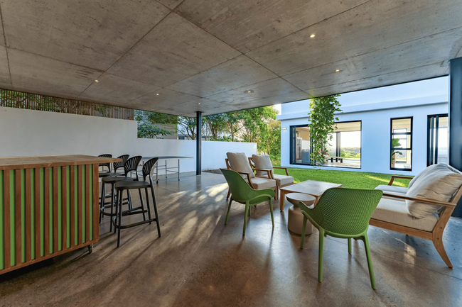 Outdoor living is a key feature of the home, with a patio that overlooks the swimming pool and garden area. A courtyard provides additional leisure space and includes a covered patio, table tennis, and a bar area. Further amenities include braai facilities, solar power, and secure on-site parking for peace of mind.