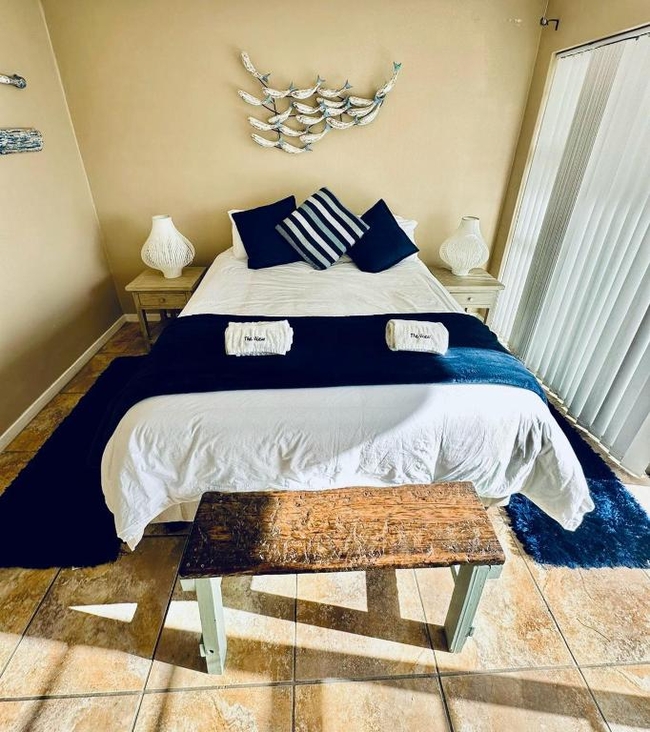 The View At Whale Cove is a ground level apartment providing accommodation for four guests in two bedrooms. The main bedroom is furnished with a Queen-size bed and has an en-suite bathroom fitted with a shower, toilet and basin. The second bedroom is also furnished with a Queen-size bed and makes use of a separate bathroom fitted with a bath, toilet and basin. The open plan living area is comfortably furnished and opens out onto a patio and garden. There is a well equipped kitchenette for all your self catering needs. Wi-Fi is provided.