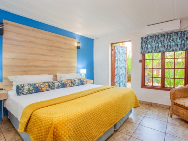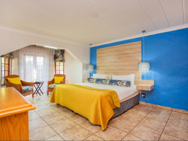 Features a spacious king bed offering crisp clean white linen,king pillows for extra comfort and fresh towels.For your enjoyment a seating area, flat-screen TV with select DStv-bouquet,Coffee&Tea tray,Bar-fridge,air-conditioning,private patio,bath/shower.