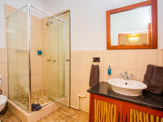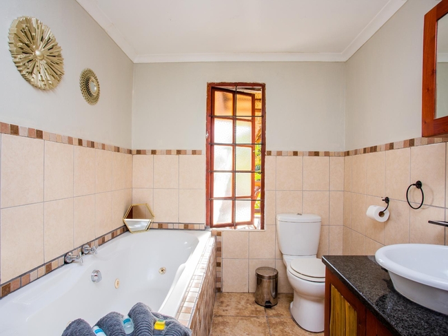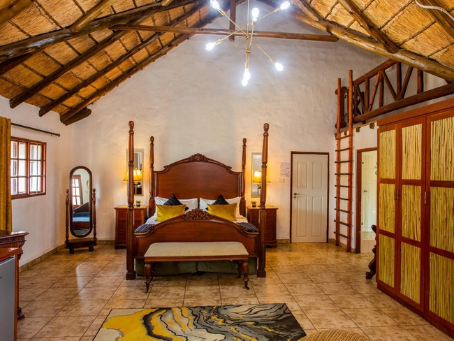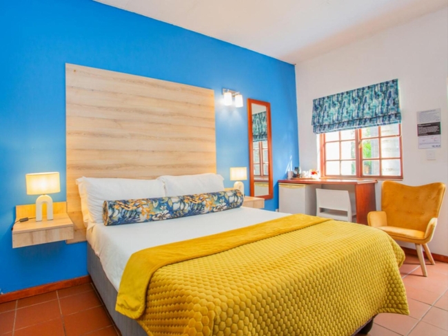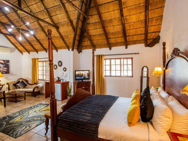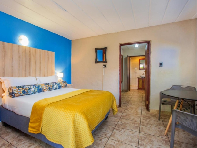 Features a spacious king bed offering crisp clean white linen, pillows for extra comfort and fresh towels. For your enjoyment a flat-screen TV with select DStv bouquet, Coffee & Tea tray, Bar-fridge, air-conditioning. En-suite bathroom with bath/shower.