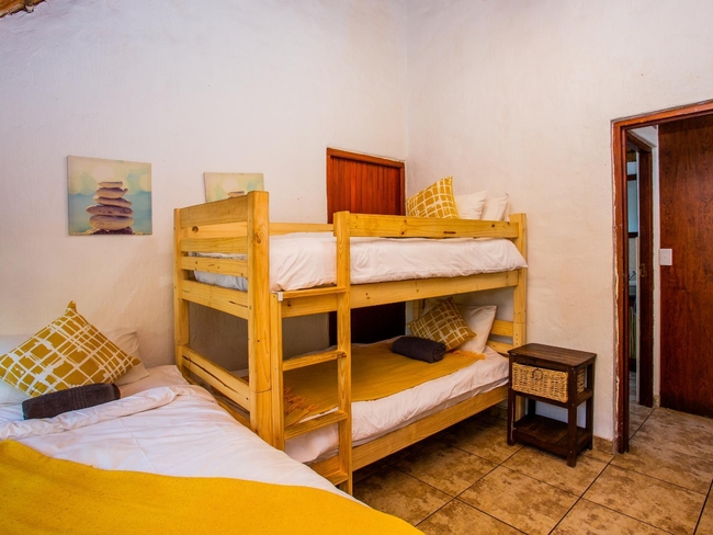 Features a queen bed in the main room, and bunk bed for kids in the second room. Offering crisp clean white linen, and fresh towels. For your enjoyment and comfort a flat screen TV with select DStv-bouquet,Coffee&Tea tray,Bar-fridge,air-conditioning,patio
