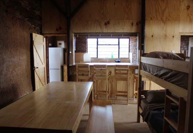 The house can sleep up to 12 guests. There are bunk beds for eight guests in the main living area and another room with a double bed and a bunk bed. There are two bathrooms, each with hot shower, toilet and basin.