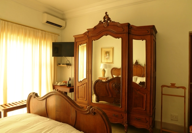 Deluxe Double Room furnished with a double bed. The room has a pool view and overlooks the breakfast room. The air-conditioning will keep you cool at night, while the high quality mattresses keep you comfortable. This room has a small kitchenette, a shower and toilet. The room is ideal for guests who wish to make their own meals.