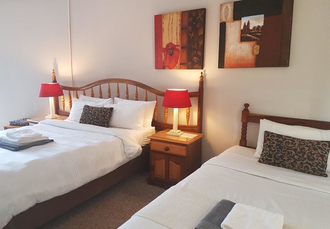 Luxury Downstair Triple Room (sleeps 3 guests), with an en-suite bathroom with towels and toiletries. Each unit is equipped with a mini fridge, a coffee station and a TV with DStv (extra channels than the normal bouquet). We also have a generator for power during load shedding and our own water tanks.